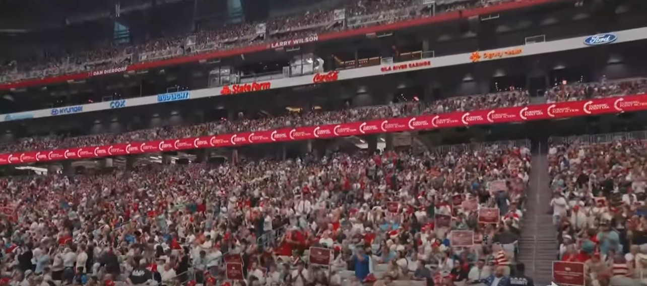 स्टेडियम पूर्ण क्षमतामा भरिएको कार्यक्रममा राष्ट्रपति डोनाल्ड ट्रम्प, उपराष्ट्रपति जे.डी. भान्स, उद्यमी इलोन मस्कसहित हजारौं समर्थक उपस्थित थिए।