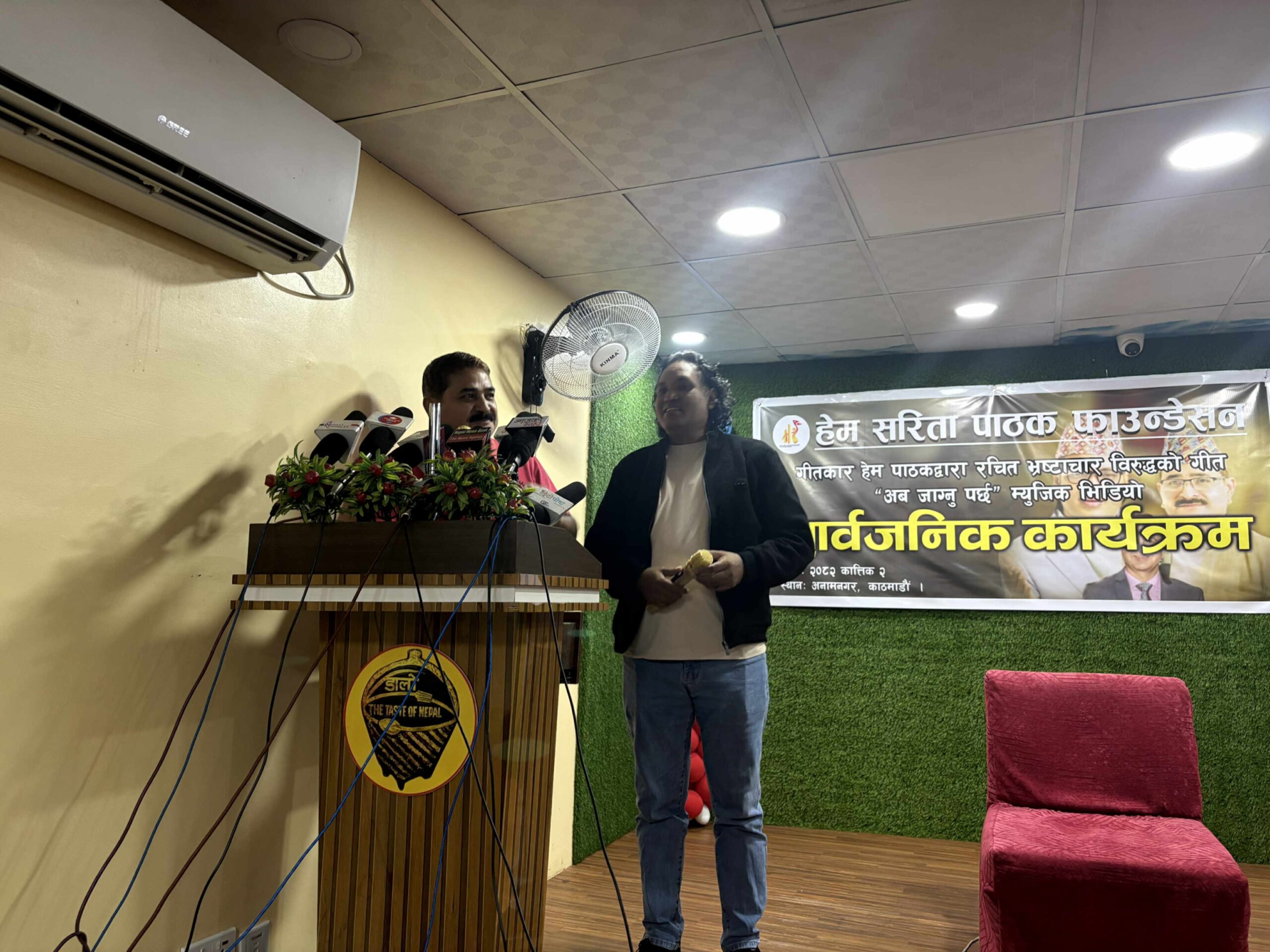 हेम सरिता पाठक फाउन्डेसनले आज २०८२ कात्तिक २ गते डालो रेस्टुरेन्ट, अनामनगर, काठमाडौंमा आयोजना गरेको ‘अब जाग्नु पर्छ’ म्युजिक भिडियोको सार्वजनिक कार्यक्रम सप्पन्न भयो ।