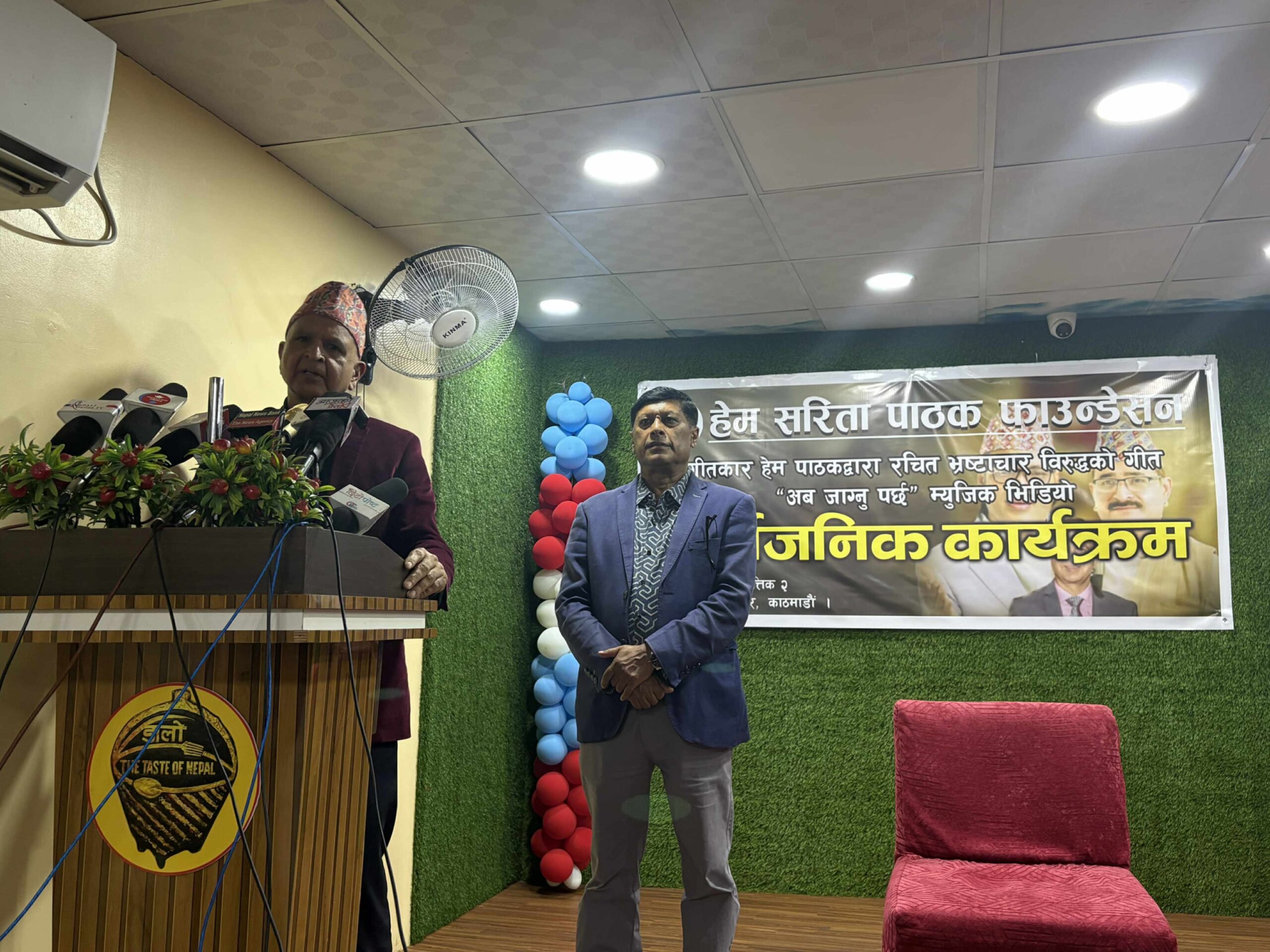 कार्यक्रममा फाउन्डेसनका प्रमुख संरक्षक गीतकार हेम पाठकले आफ्नो मन्तव्य राख्दै फाउन्डेसनको अभियानबारे स्पस्ट गर्दै गीतको उदेश्यबारे बोल्नु भएको थियो ।